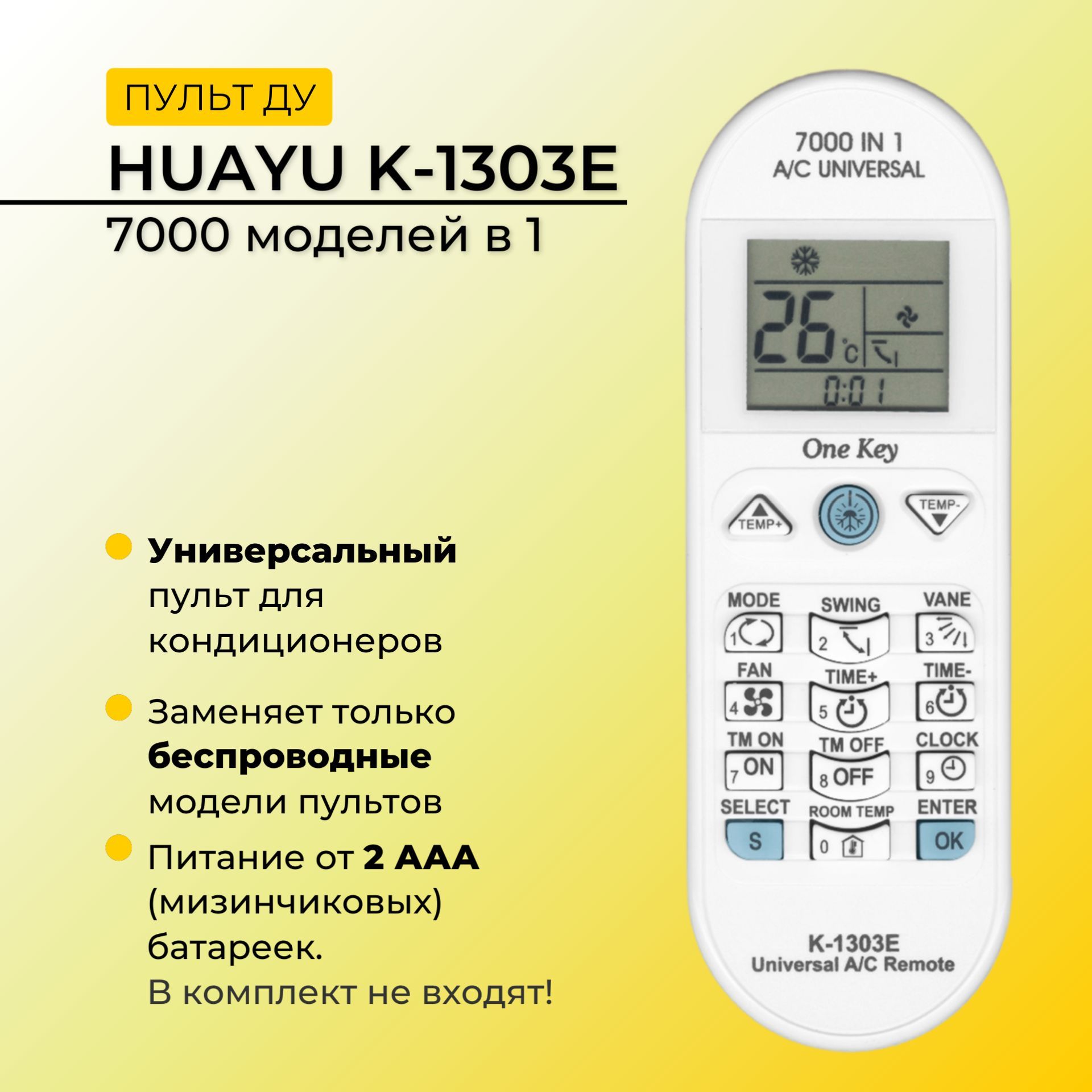 Совместимые модели телевизоров: Список некоторых поддерживаемых брендов: ABASK Abion ACElectric Aero Aeronik Air-Green Airwell AIRWELL Akvilon ALC ALPIN ALPINE ANTARKTIK Artel AUCMA Aurum AUX AVEX Axioma Ballu BAXI Bergamo Berlingtoun Bismark BOERKABosch BREEON Candy Carrier CARRIER CENTEK CHANGHONG CHICAGO Chigo CHIGO CHOFU CHUNLAN COMFORSTAR CONROWA Cooper&Hunter CORONA Dahatsu Daichi DAIKIN daikin Dantex DECODING De'Longhi Denko DOCTORDONGBAO DONGXINBAO Ecoclima EcoStar ELECTRA Electrolux Energolux Euronord FEDDERS Ferrum FRESTECH Fujitsu FUNAI GALANZ GENERAL GeneralClimate GLEE GOLDSTAR GREE Green GUQIAO Haier HAIER HEC HisenseHISENSE HITACHI HUABAO HUAKE HUALING HUAMEI HUIFENG HUIKANG HYU