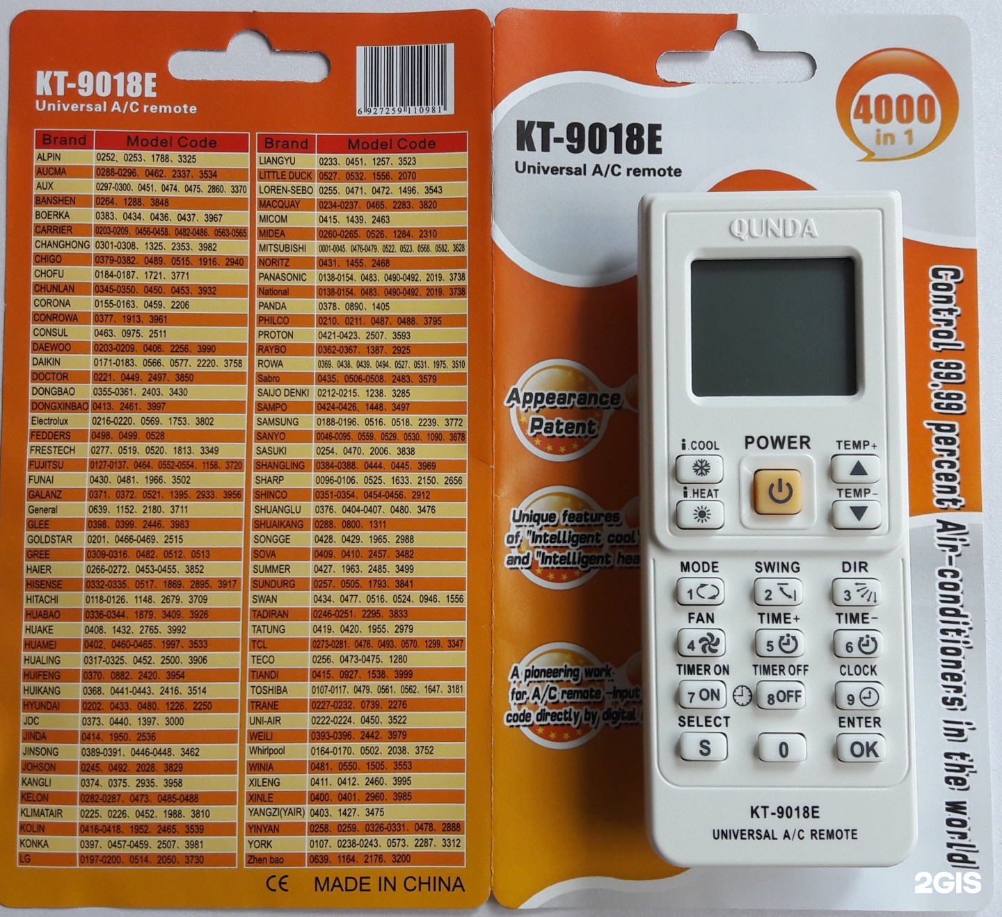 Универсальный пульт K-1758Е (Air Cond 4000 в 1)